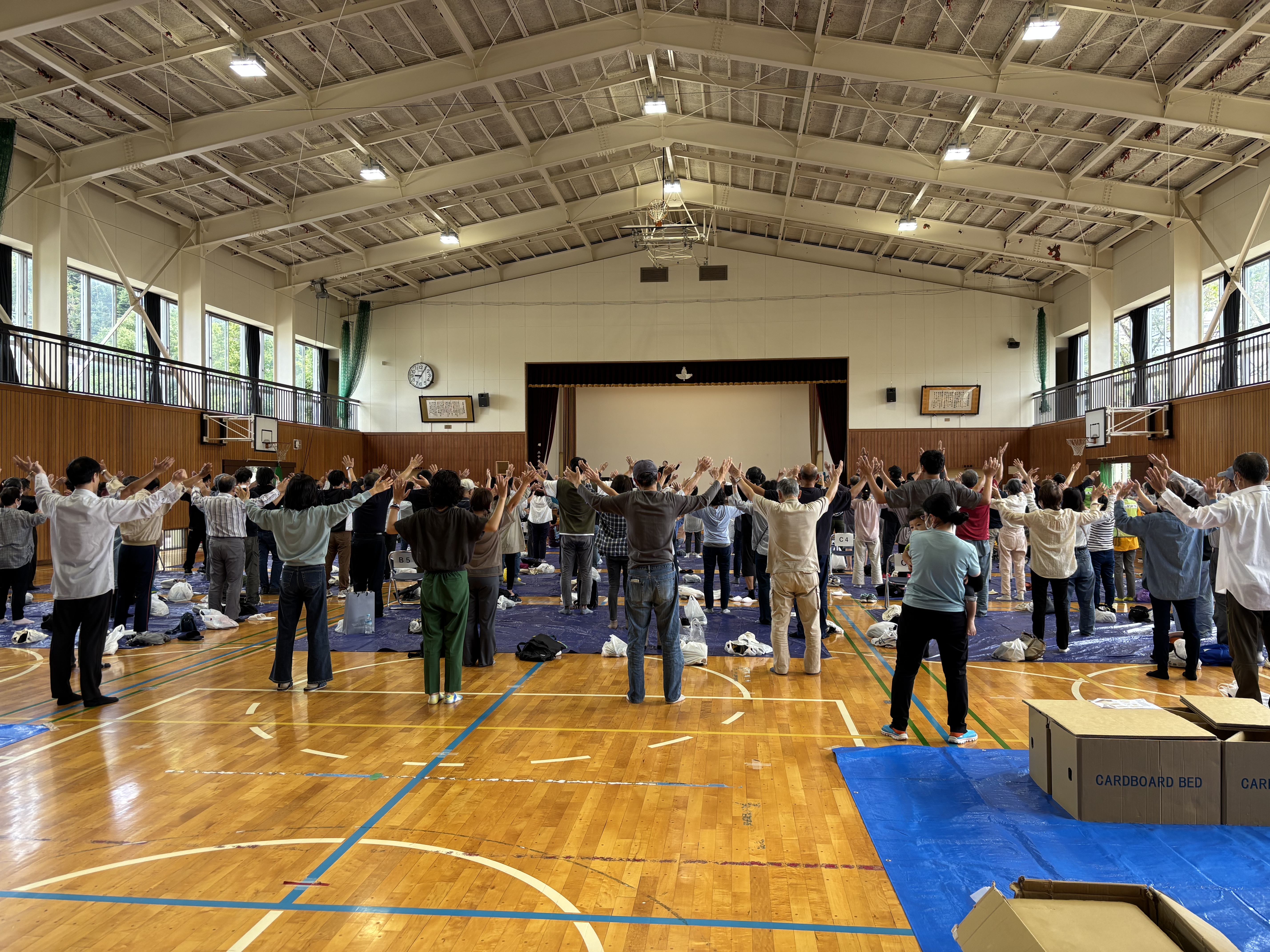 まずは、防災体操で身体をほぐします。