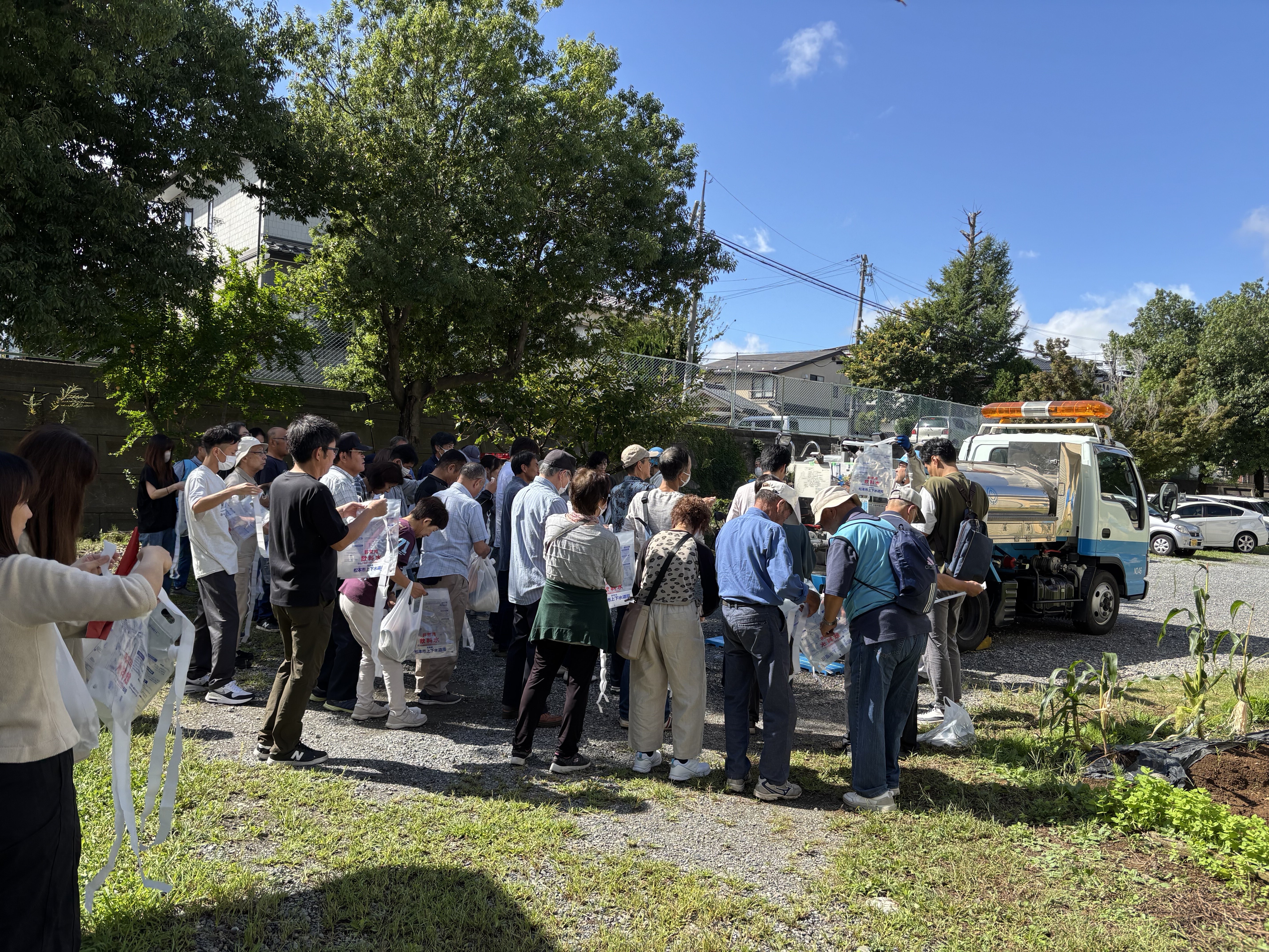 給水車からの給水体験や段ボールベッドの組立て、災害トイレの設置訓練を