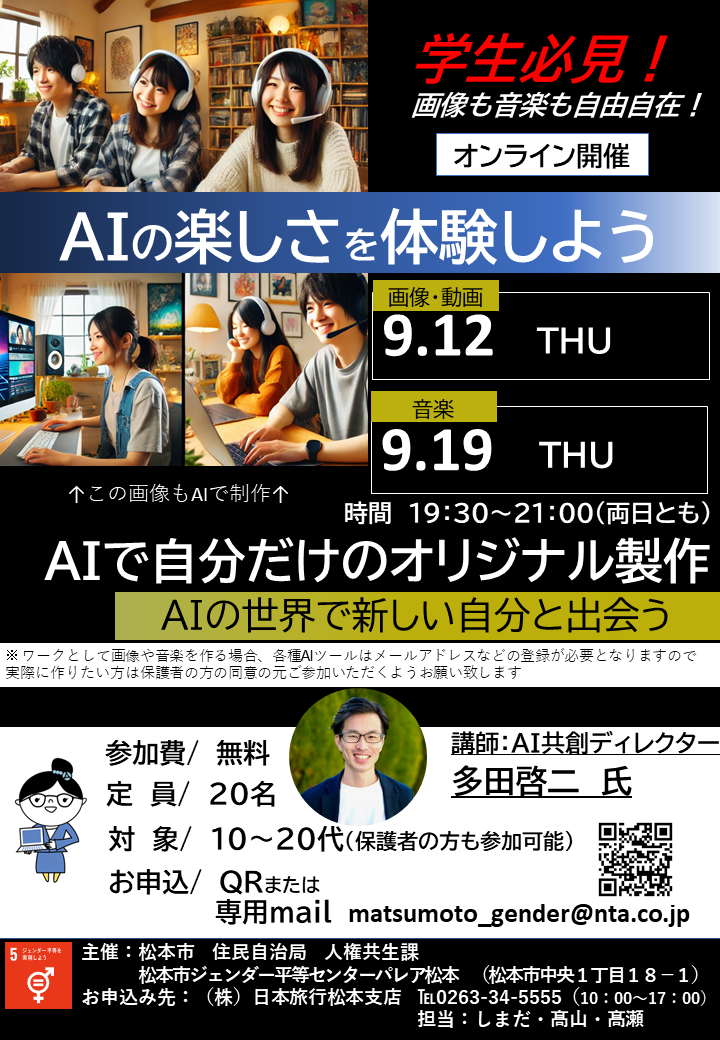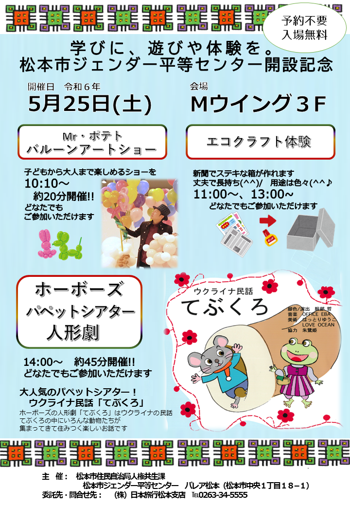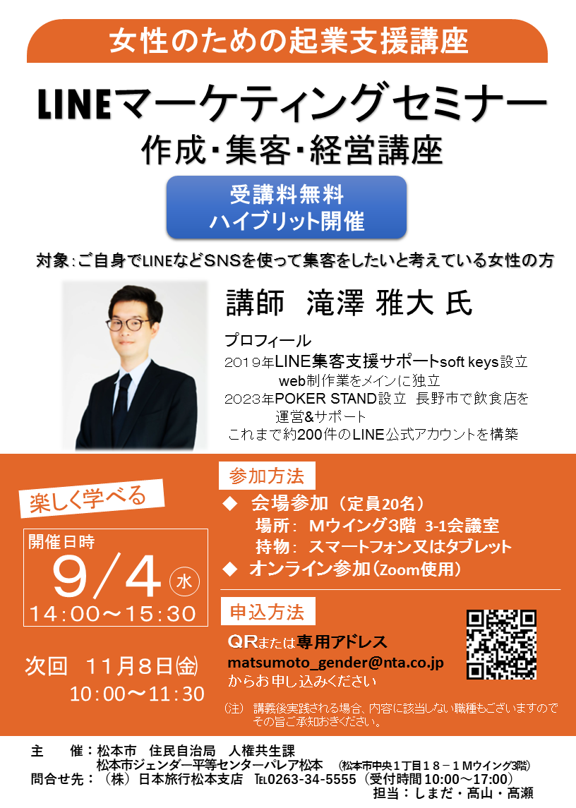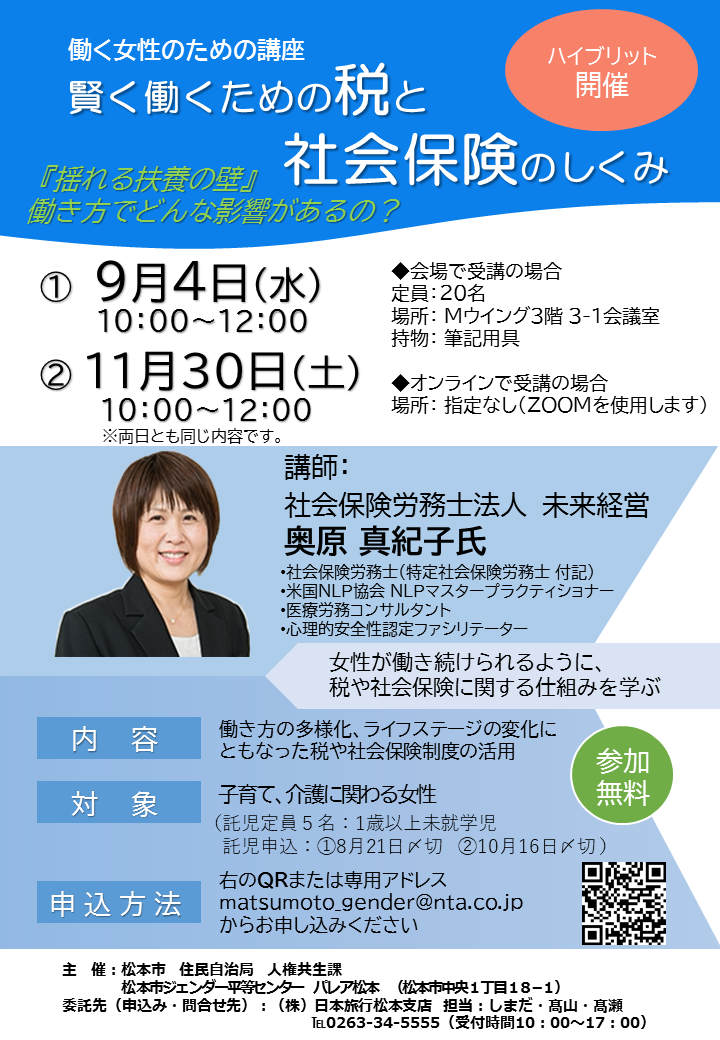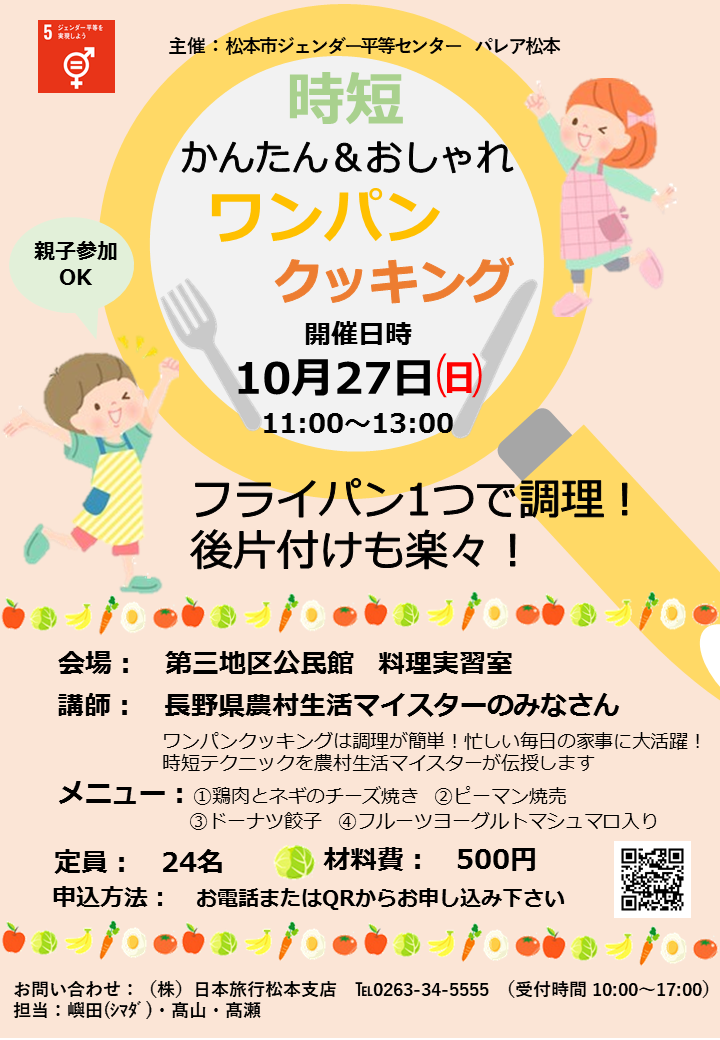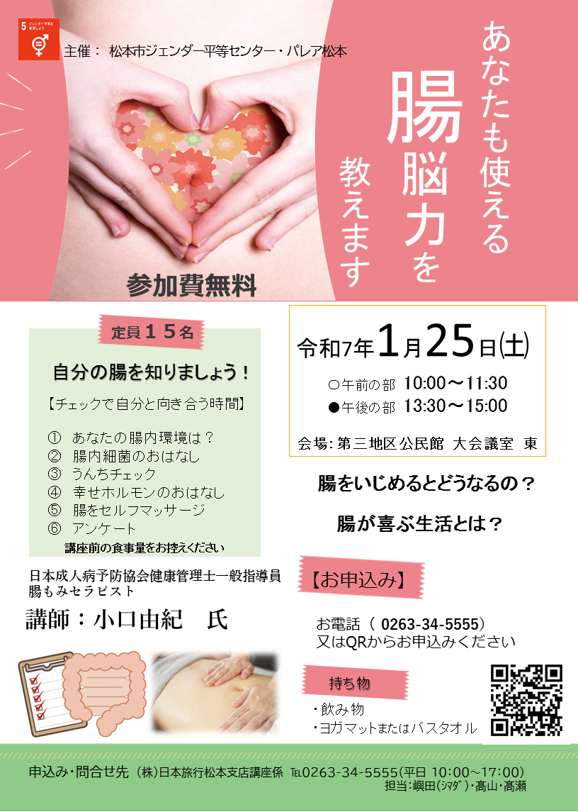 インターネットからの申し込みができない場合や、申込期限が過ぎている場合は、ジェンダー平等センター(Tel0263-39-1105)または(株)日本旅行松本支店(Tel0263-34-5555)へお電話ください。