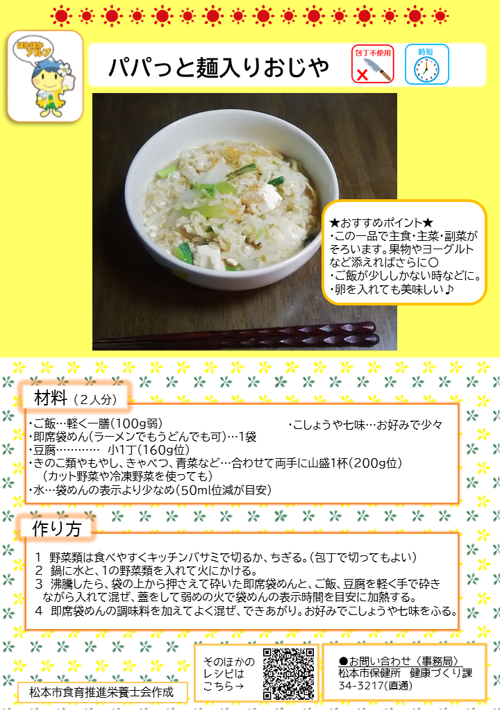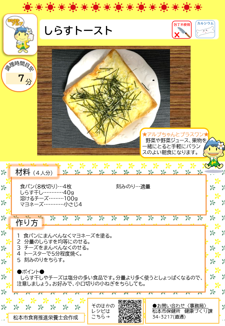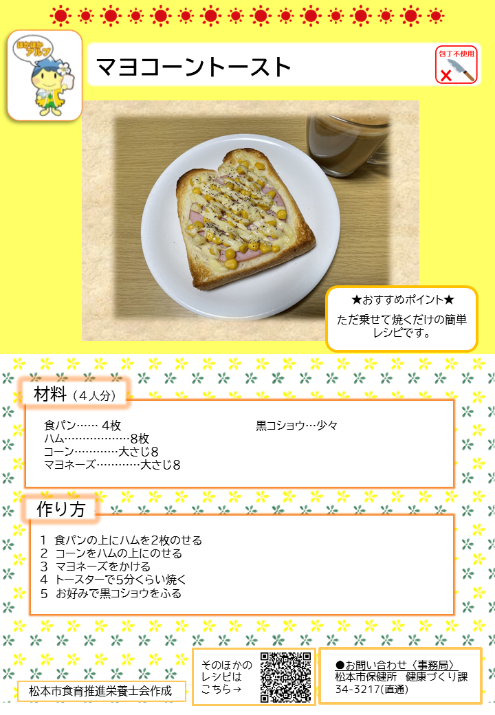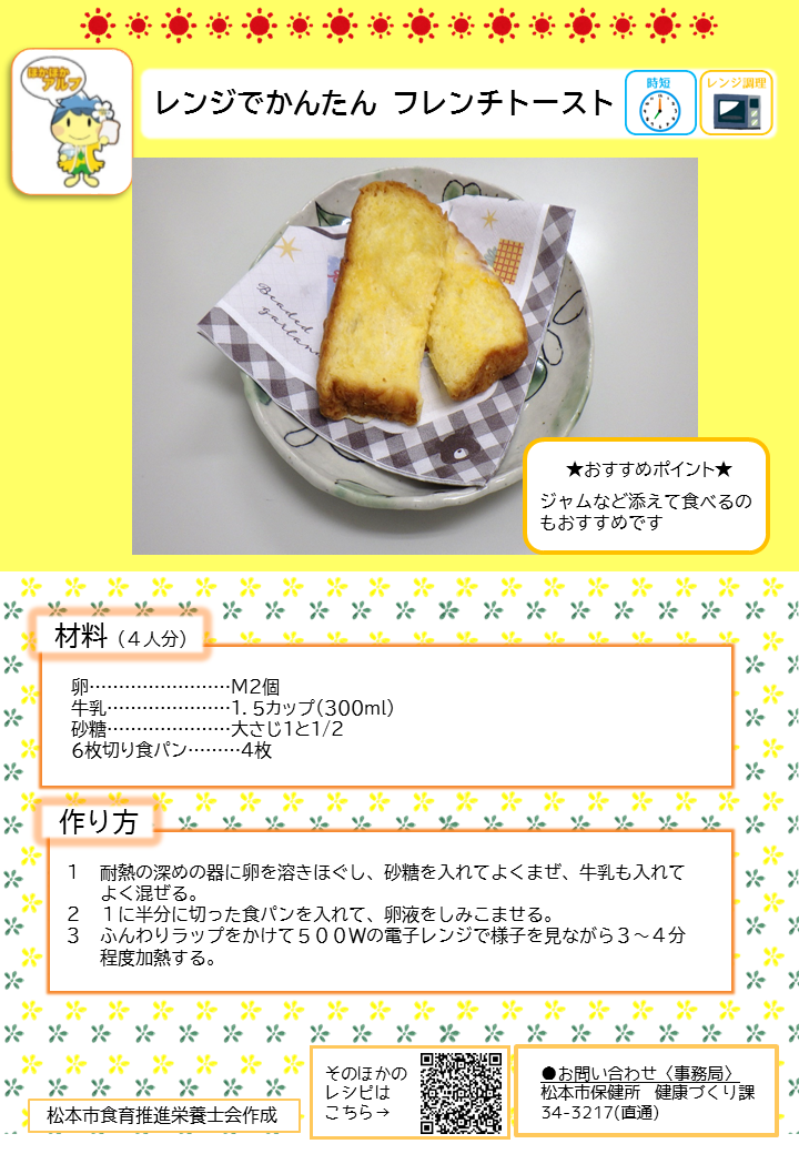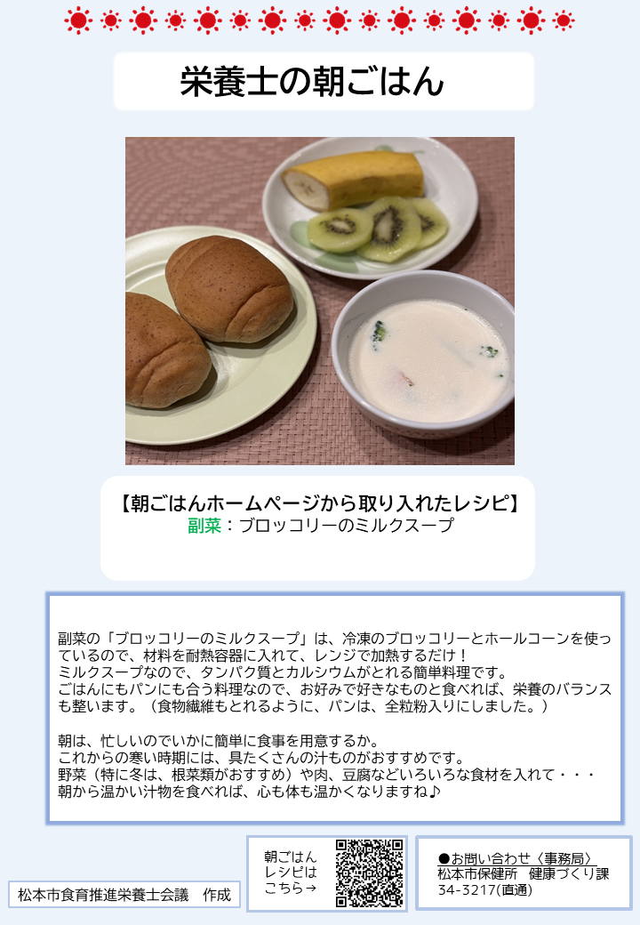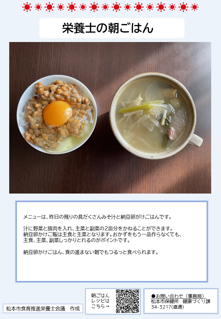 こちらのページでは、簡単に作れる朝ごはんのレシピや、松本市管理栄養士の普段の朝食の様子、朝ごはんに関する松本市のおすすめ情報を紹介しています。