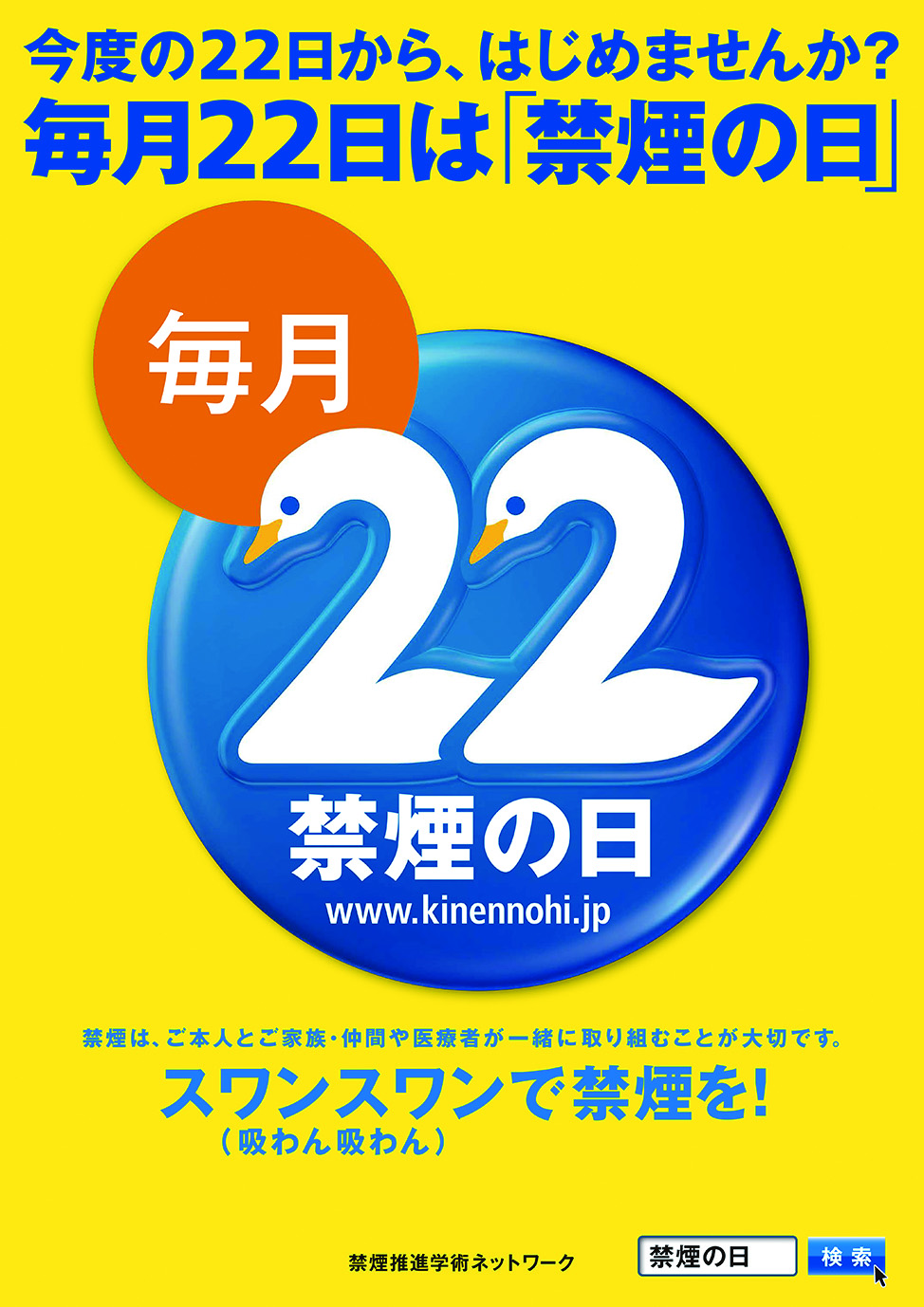 数字の"2"を白鳥(スワン)に見立て、毎月22日は「禁煙の日」、スワンスワン(吸わん吸わん)で禁煙を!としています。
