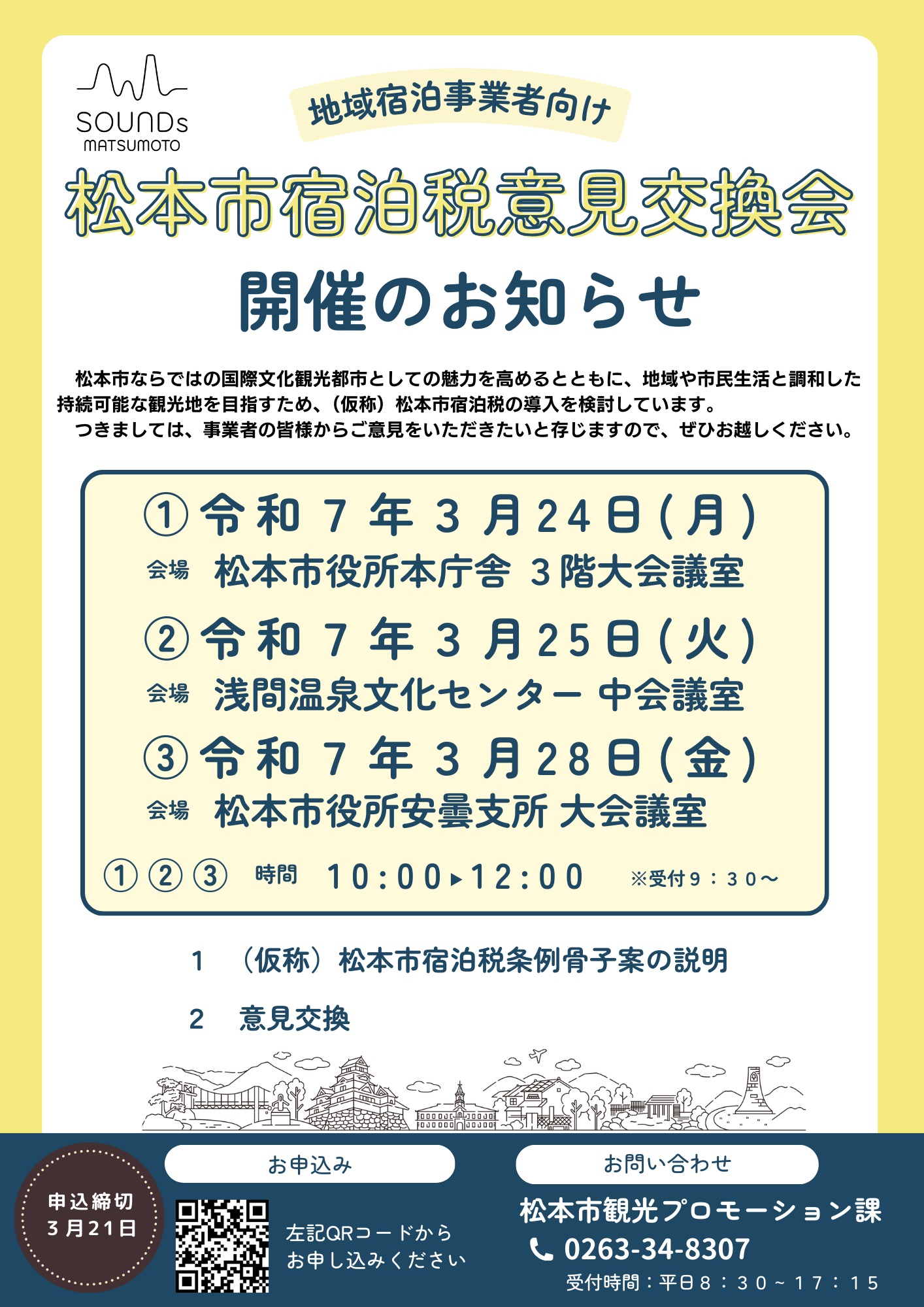 地域宿泊事業者向け松本市宿泊税意見交換会を開催します。 ※終了しました。